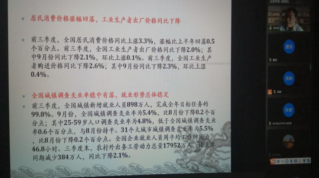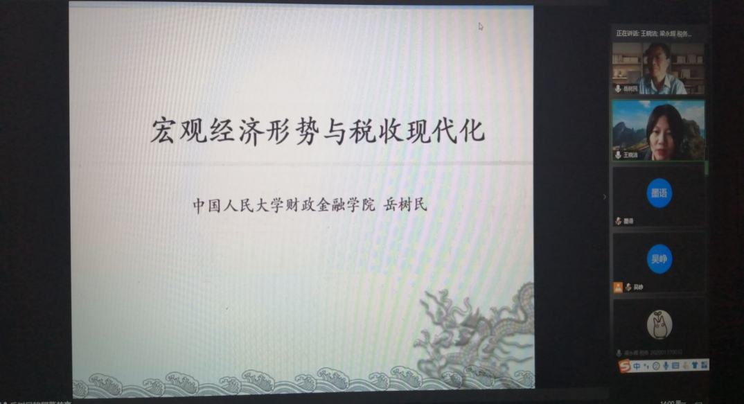 10月19日下午,中国人民大学博士生导师岳树民教授应太阳集团tcy8722邀请,通过腾讯会议平台为同学们作题为“当前宏观经济形势与税收政策”的主题报告。本次报告由王晓洁经理主持,仇晓洁副经理做点评,太阳集团tcy8722部分师生200余人在线聆听了本次报告。